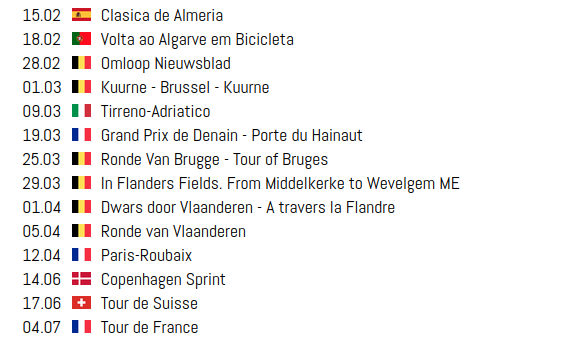 PROGRAMME DE LA SAISON 2026 (jusqu’au Tour de France)