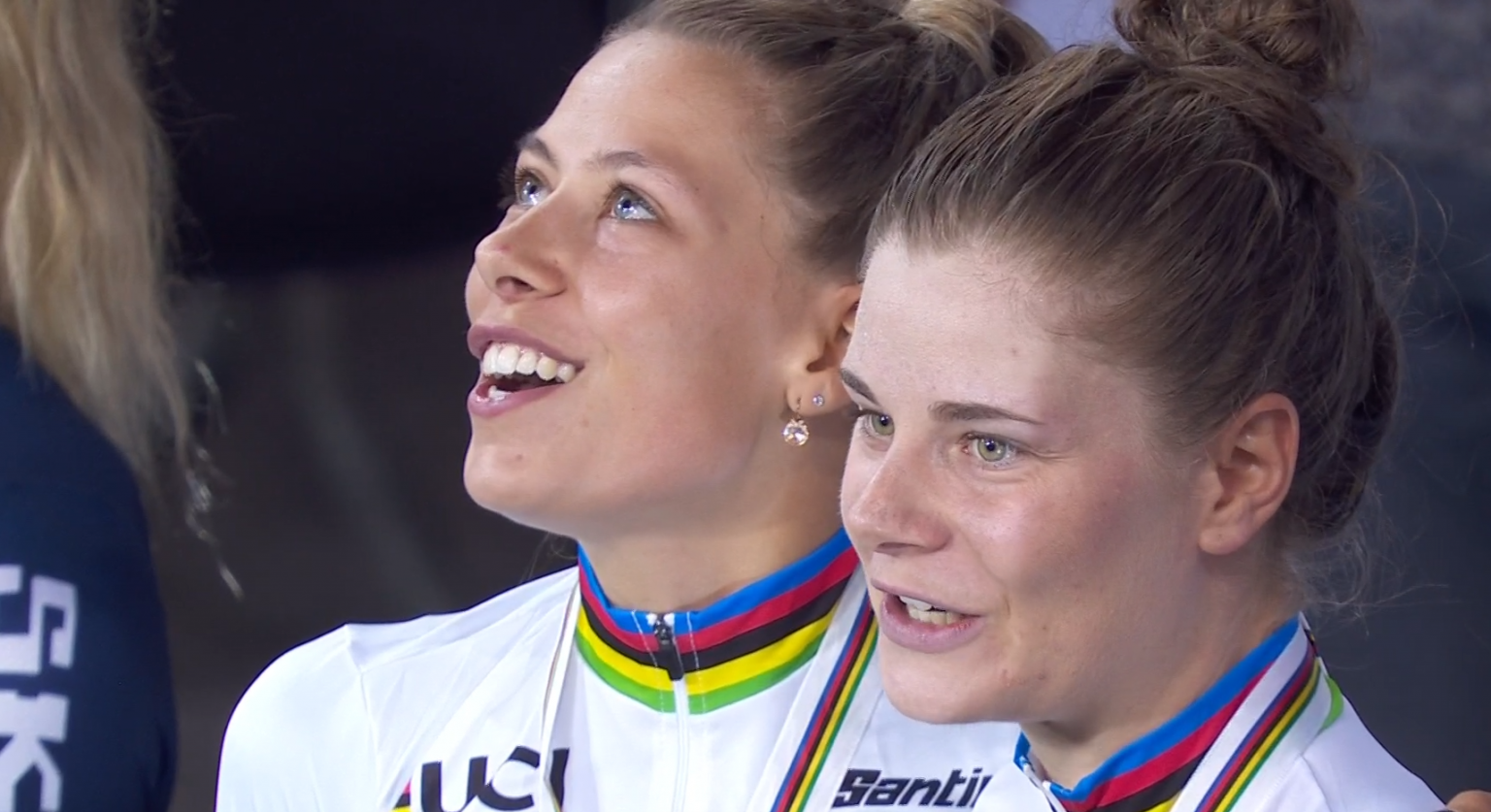 Cette victoire marque aussi un beau retour au premier plan pour Shari Bossuyt, qui fait équipe avec Lotte Kopecky pour la première fois sur une grande compétition internationale depuis son injuste suspension de deux ans. Logiquement émue par cette victoire, elle n’a pu retenir ses larmes à la fin de la course.